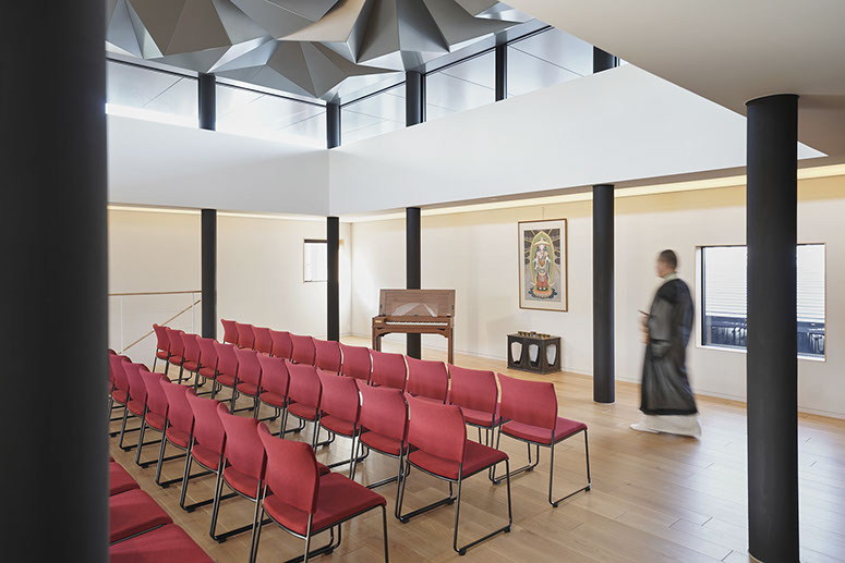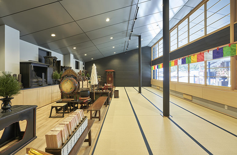 築後250年余の本堂に新築の建物を接続する必要があり、そのままでは本堂に現行の建築基準法が遡及してしまう。基準法第 3 条が規定する適用除外を受けるため、本堂を名古屋市指定文化財とする必要があった。名古屋市役所の関連部署との調整のため、完成までに 9 年を要した。