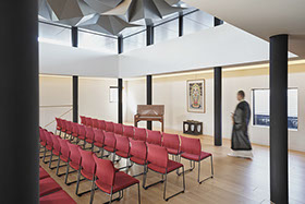 笠寺観音こと笠覆寺は、開基以来約 1300 年の歴史をもつ寺院である。改築の目的は、参拝者動線を身障者に対応したものへと更新しつつ、本堂を江戸期の姿に修復・保存し、その周囲の堂宇群を現代の要求に対応したものへと建て替えることだった。